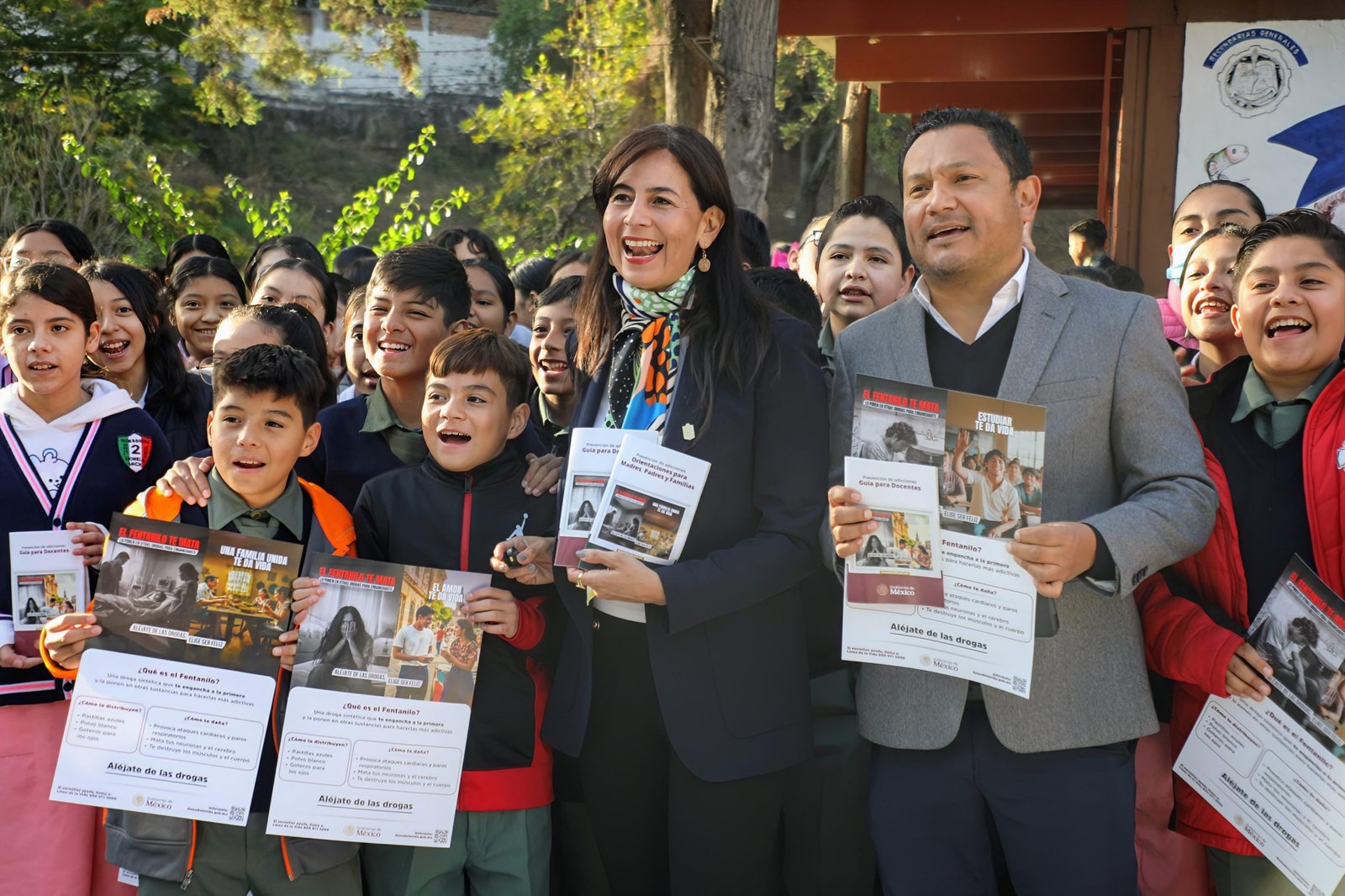 Con el objetivo de promover una vida sana y prevenir las adicciones y frente a cientos de alumnas y alumnos, comenzó la entrega de 400 mil materiales de apoyo para docentes, estudiantes, padres y madres de familia, los cuales contemplan guías y carteles.