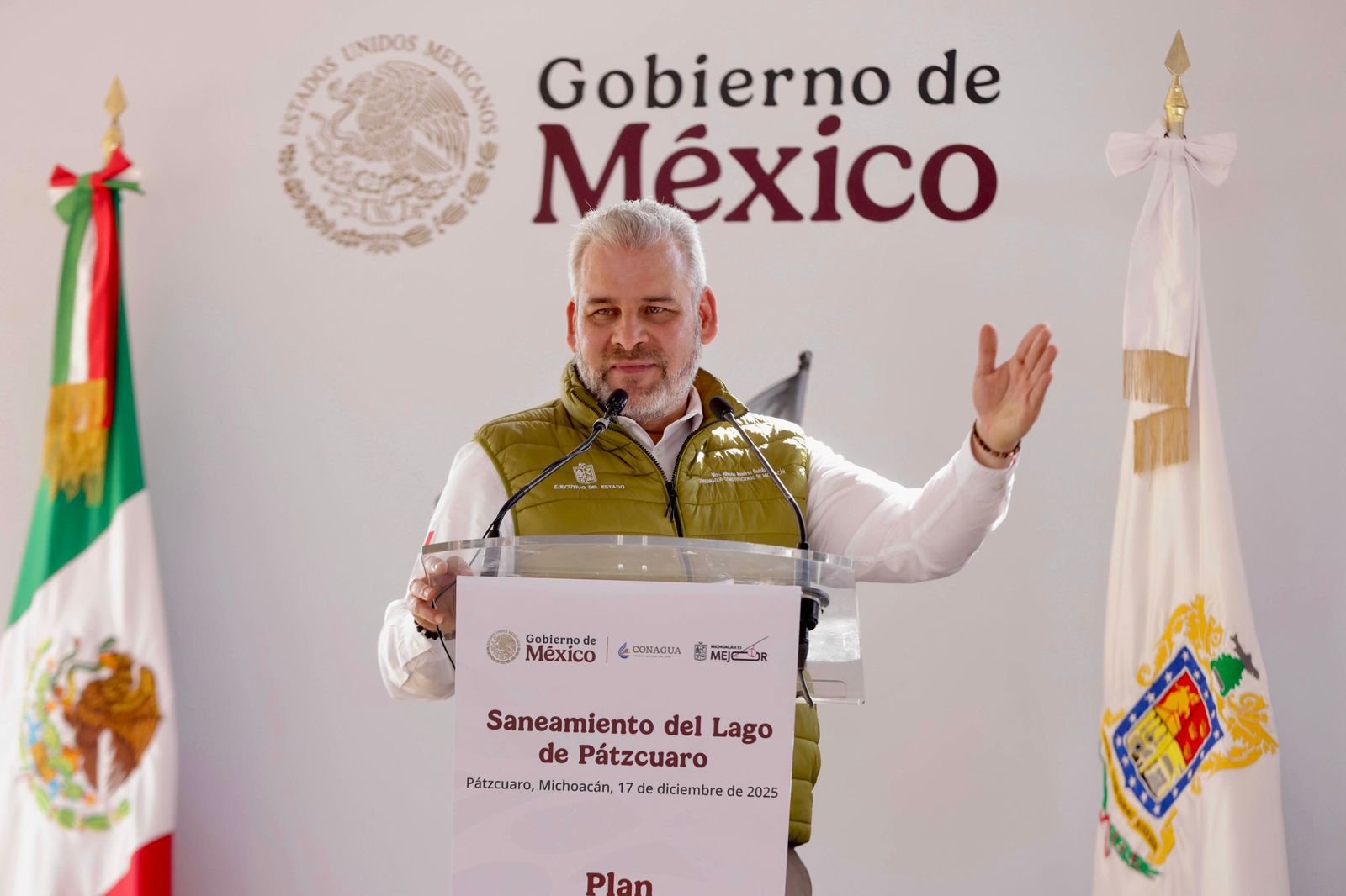 Pátzcuaro, Michoacán, 17 de diciembre de 2025.- Con una inversión federal histórica de 147 millones de pesos, el gobernador Alfredo Ramírez Bedolla y el coordinador del Plan General Lázaro Cárdenas de la Comisión Nacional del Agua (Conagua), Jorge Joaquín González Bezares, arrancaron los trabajos de rehabilitación de las plantas tratadoras de agua de San Pedrito, Las Garzas y Janitzio, para el saneamiento del lago de Pátzcuaro.