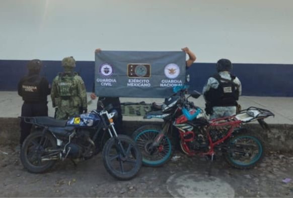 En el lugar también se decomisó una motocicleta de la marca Italika, de modelo reciente que cuenta con reporte de robo, y una más de la misma marca, sin placas de circulación.