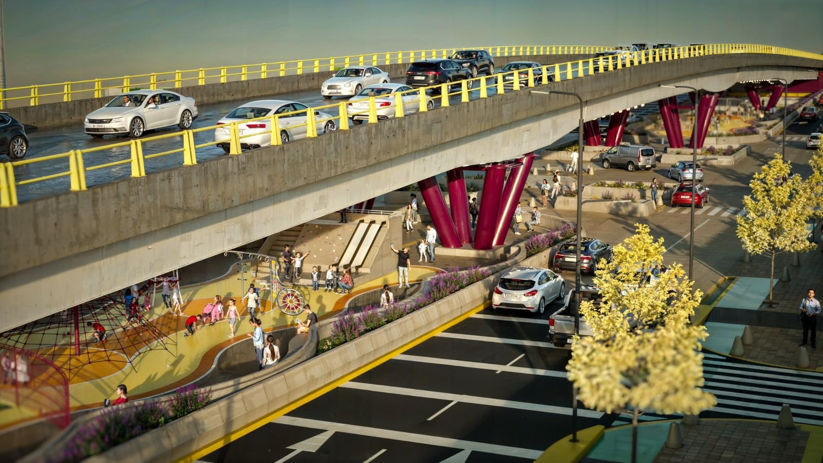 Morelia, Michoacán, 7 de mayo de 2025.- El Paso Superior Vehicular Catrinas, en Villas del Pedregal, ofrecerá diversas amenidades en su bajopuente, esto para el beneficio de 125 mil personas, creando un espacio público inclusivo, que permitirá el libre desarrollo de los habitantes al poniente de la capital michoacana.