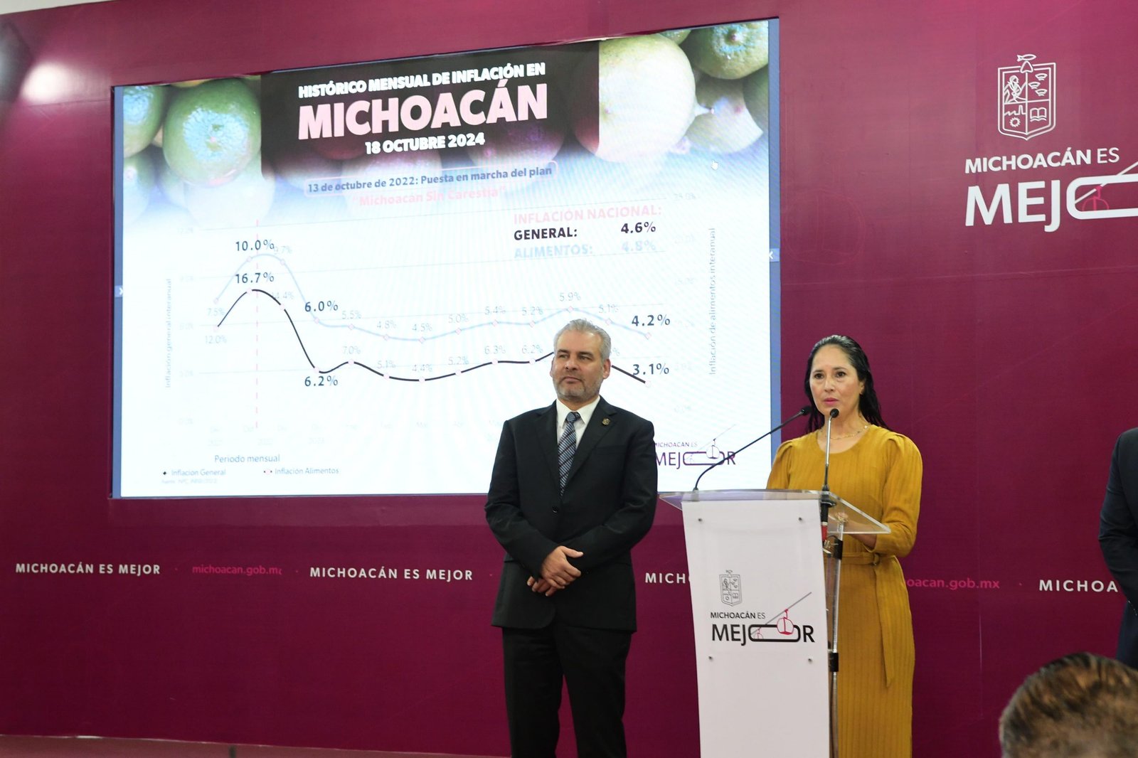 En conferencia de prensa encabezada por el gobernador Alfredo Ramírez Bedolla, la subsecretaria del Trabajo y Previsión Social, Yunuén Mejía Béjar, en representación del titular de la Sedeco, Claudio Méndez Fernández, informó que el objetivo del monitoreo de precios es beneficiar a las familias michoacanas para adquirir los 25 productos de la canasta al mejor costo.