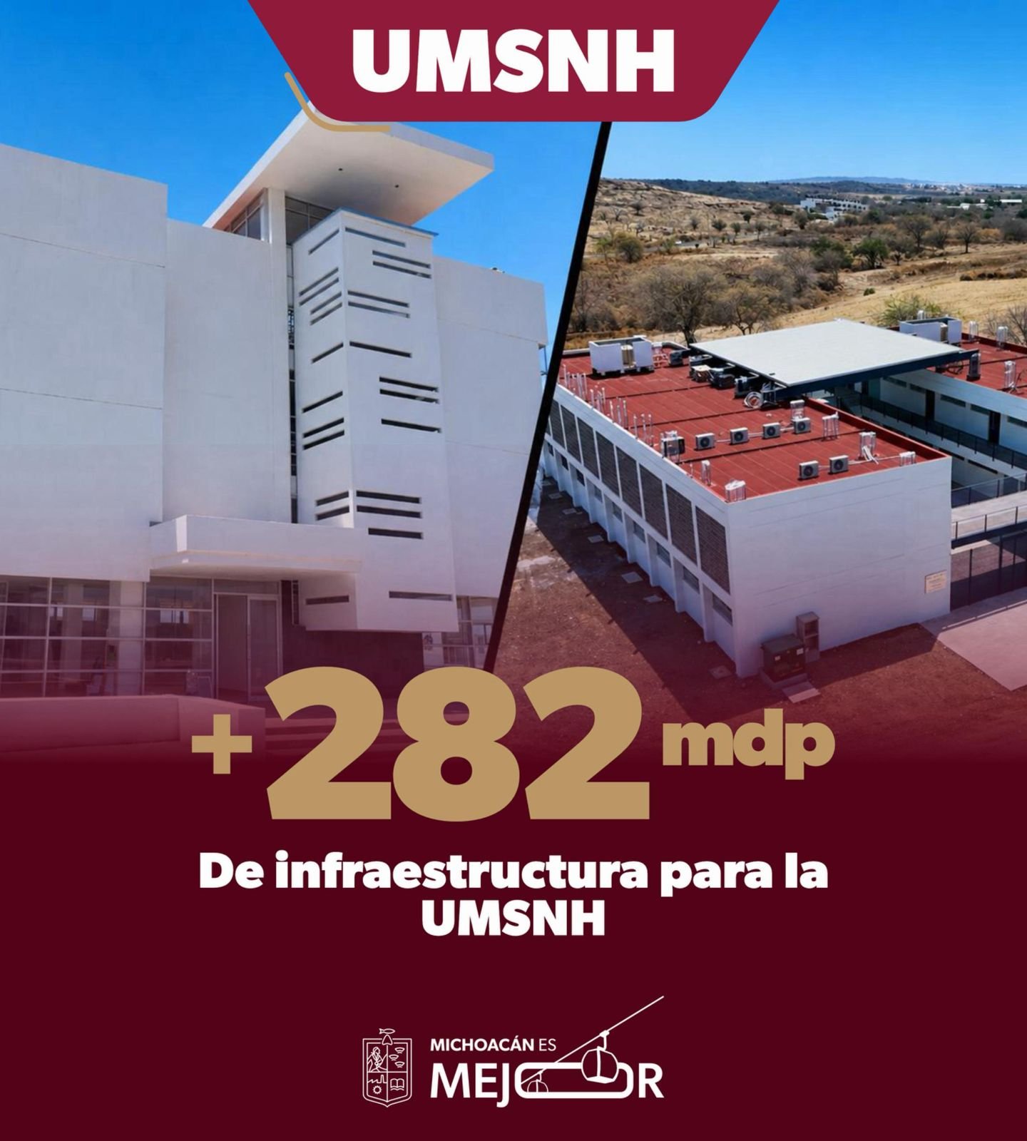 Morelia, Michoacán, 28 de abril de 2026.- Durante la administración del gobernador Alfredo Ramírez Bedolla se han destinado 282.1 millones de pesos para la ejecución de 31 obras y acciones en la Universidad Michoacana de San Nicolás de Hidalgo (UMSNH), con lo cual se ha mejorado la infraestructura educativa para las y los jóvenes de la entidad.