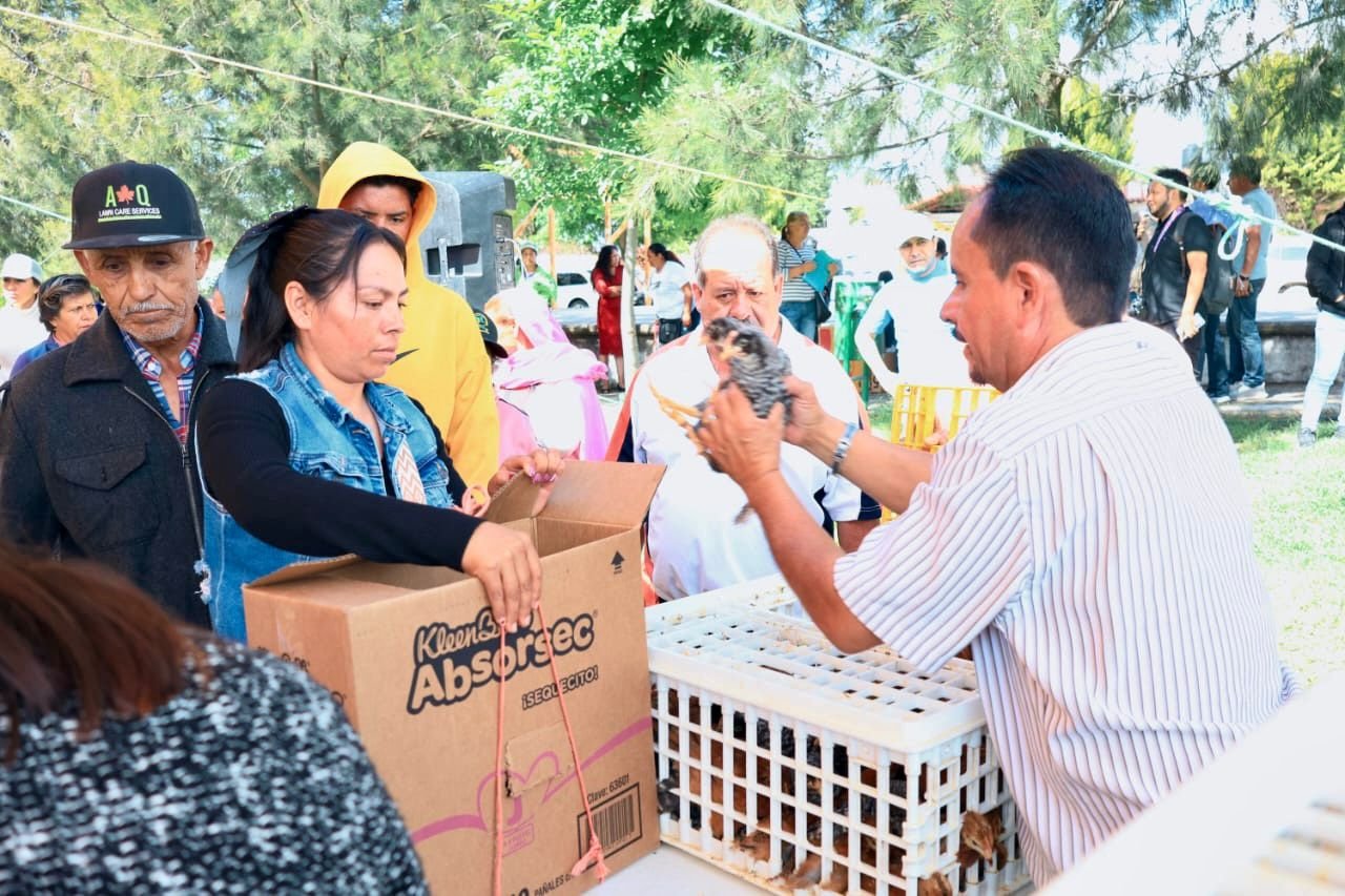 Morelia, Michoacán, 8 de agosto de 2025.- El Gobierno de Michoacán a través de la Secretaría de Agricultura y Desarrollo Rural (Sader), que encabeza Cuauhtémoc Ramírez Romero, realizó la entrega de 15 mil aves de doble propósito, mil 500 paquetes de hortalizas y mil 500 kilos de micelio para producción de hongo seta, como parte del programa insignia Agrosano, a través del esquema “Produce lo que te comes”.