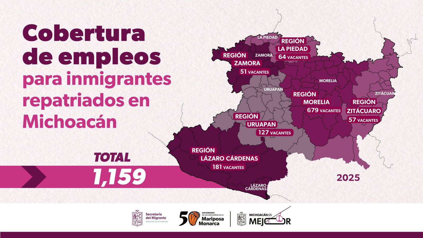 Las actividades del programa se llevarán a cabo en las regiones de La Piedad, Lázaro Cárdenas, Morelia, Uruapan, Zamora y Zitácuaro; donde se han identificado un total de 1,159 vacantes de empleo.