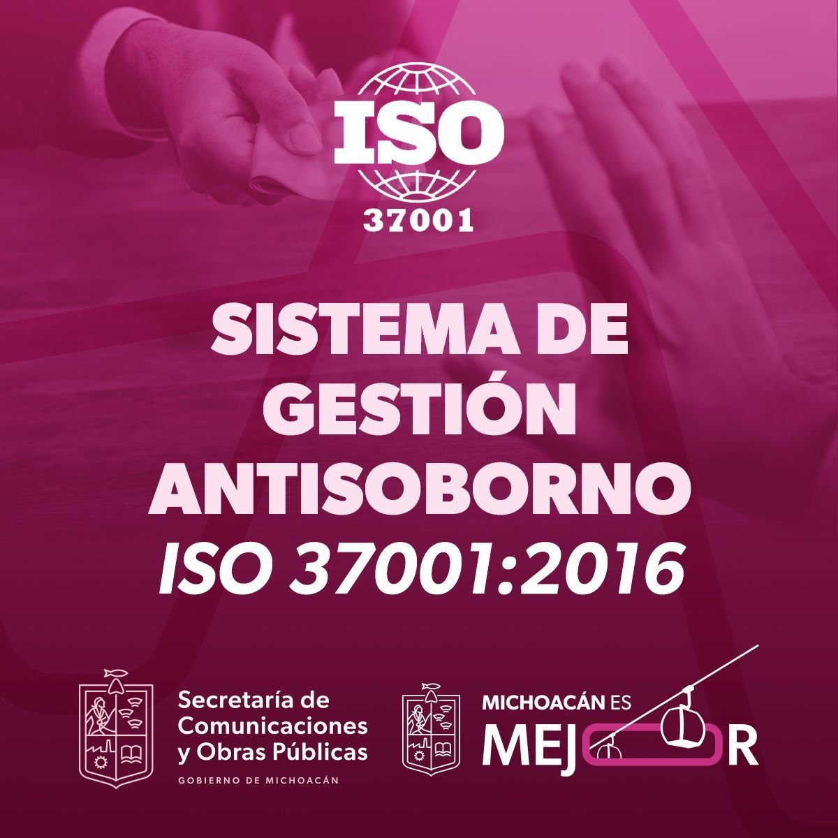 Morelia, Michoacán, 6 de mayo de 2025.- La Secretaría de Comunicaciones y Obras Públicas (SCOP) del Gobierno de Michoacán obtuvo la certificación internacional ISO 37001:2016 gracias a la implementación efectiva de su Sistema de Gestión Antisoborno (SGAS), con el cual refrenda su compromiso con la legalidad, la integridad y la transparencia en todas sus actividades, procesos y contrataciones.