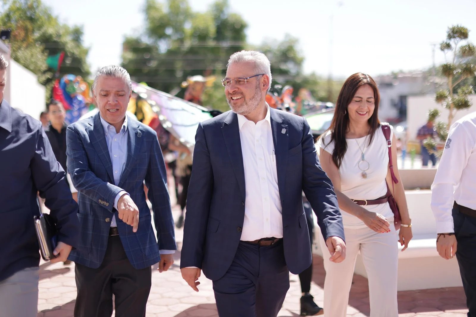 Acompañaron al gobernador los titulares de las secretarías de Educación, Gabriela Molina; de Comunicaciones y Obras Públicas, Rogelio Zarazúa; de Finanzas, Luis Navarro; de Movilidad, Gladyz Butanda; de Cultura, Tamara Sosa; y de Bienestar, Andrea Serna; así como directivos de los nuevos planteles, madres y padres de familia, y estudiantes.