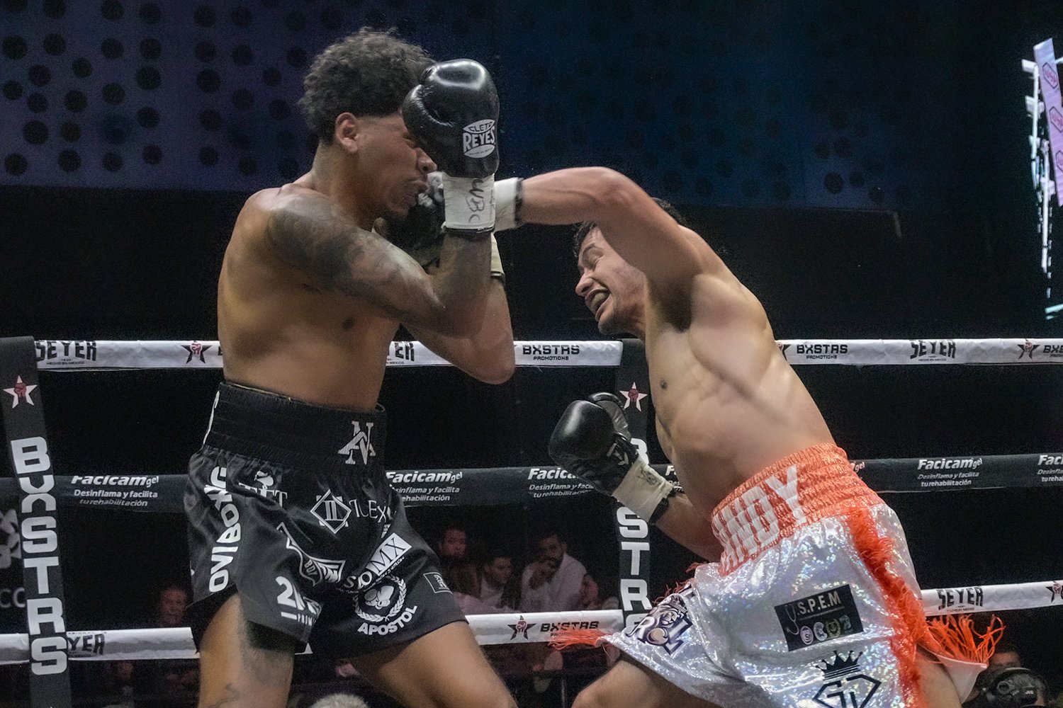 Con León Loaiza ya sangrando de las fosas nasales, el nieto de la leyenda siguió buscando el nocaut, en los dos últimos asaltos, para llevarse la victoria aprovechando además el cansancio físico de su oponente.