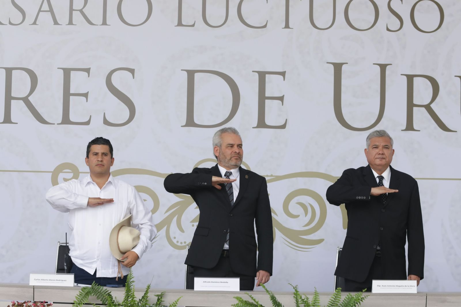 Acompañaron al gobernador el presidente de la Mesa Directiva del Congreso local, Juan Antonio Magaña de la Mora; el magistrado presidente del Poder Judicial, Jorge Reséndiz García; el secretario de Gobierno, Carlos Torres Piña; el fiscal General del Estado, Adrián López Solís; la legisladora federal, Guadalupe Araceli Mendoza Arias; los diputados locales Conrado Paz Torres y Carlos Alejandro Bautista Tafolla; así como funcionarios estatales y municipales.