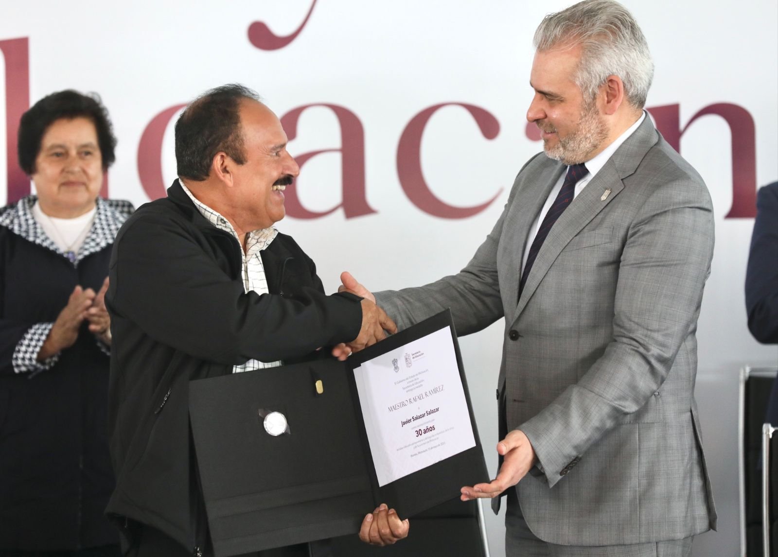 “Sin educación no hay desarrollo, civilidad, ni transformación. Por eso la educación es primero; con las maestras y maestros de Michoacán todo, sin ellos nada. Desde el inicio de mi administración hemos trabajado por saldar deudas históricas con el magisterio”, manifestó.