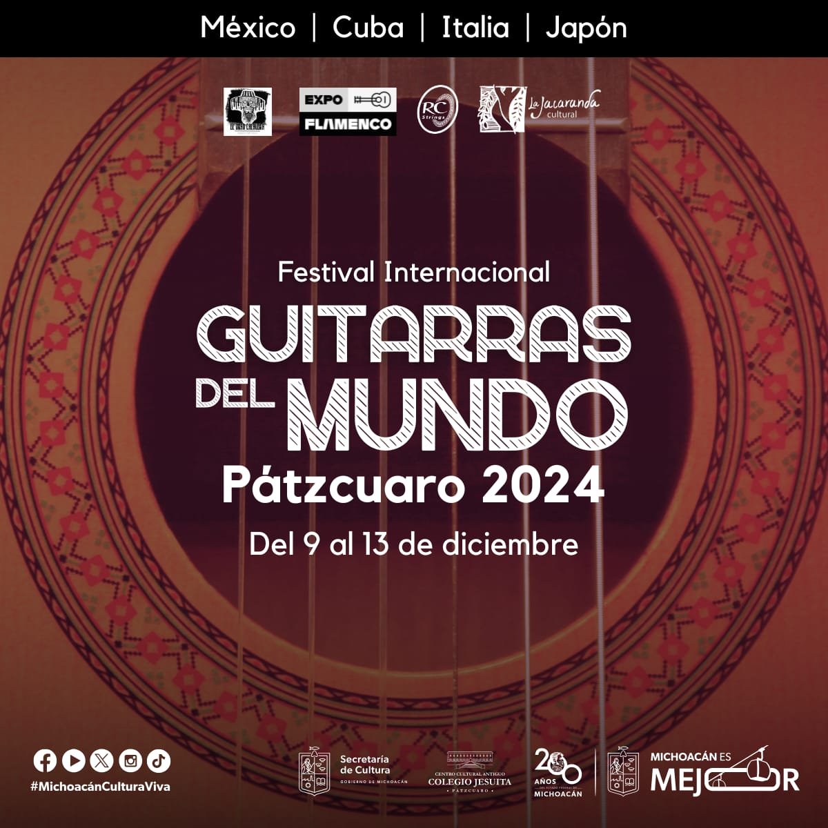 Morelia, Michoacán, 5 de diciembre de 2024.- El Centro Cultural Antiguo Colegio Jesuita será el escenario principal del primer Festival Internacional Guitarras del Mundo, Pátzcuaro 2024, un evento que reunirá a destacados guitarristas de México, Cuba, Italia y Japón. Del 9 al 13 de diciembre, el público podrá disfrutar de 10 conciertos y charlas musicales, una mezcla única de talento y estilos provenientes de diversas culturas.