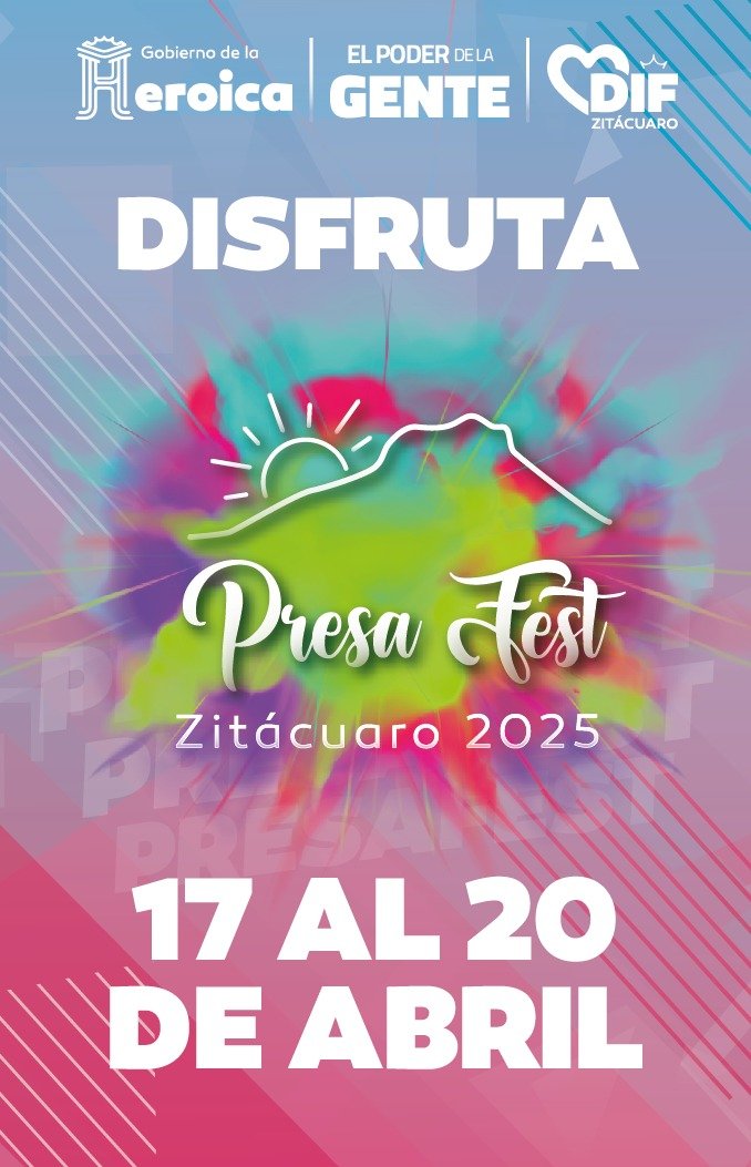Morelia, Michoacán, 10 de abril de 2025.– Zitácuaro presentó la edición 2025 del Presa Fest, evento con acceso libre que reunirá del 17 al 20 de abril, eventos deportivos, gastronómicos y musicales, todo en un ambiente familiar y pet friendly, informó la Secretaría de Turismo de Michoacán (Sectur), encabezada por Roberto Monroy García.