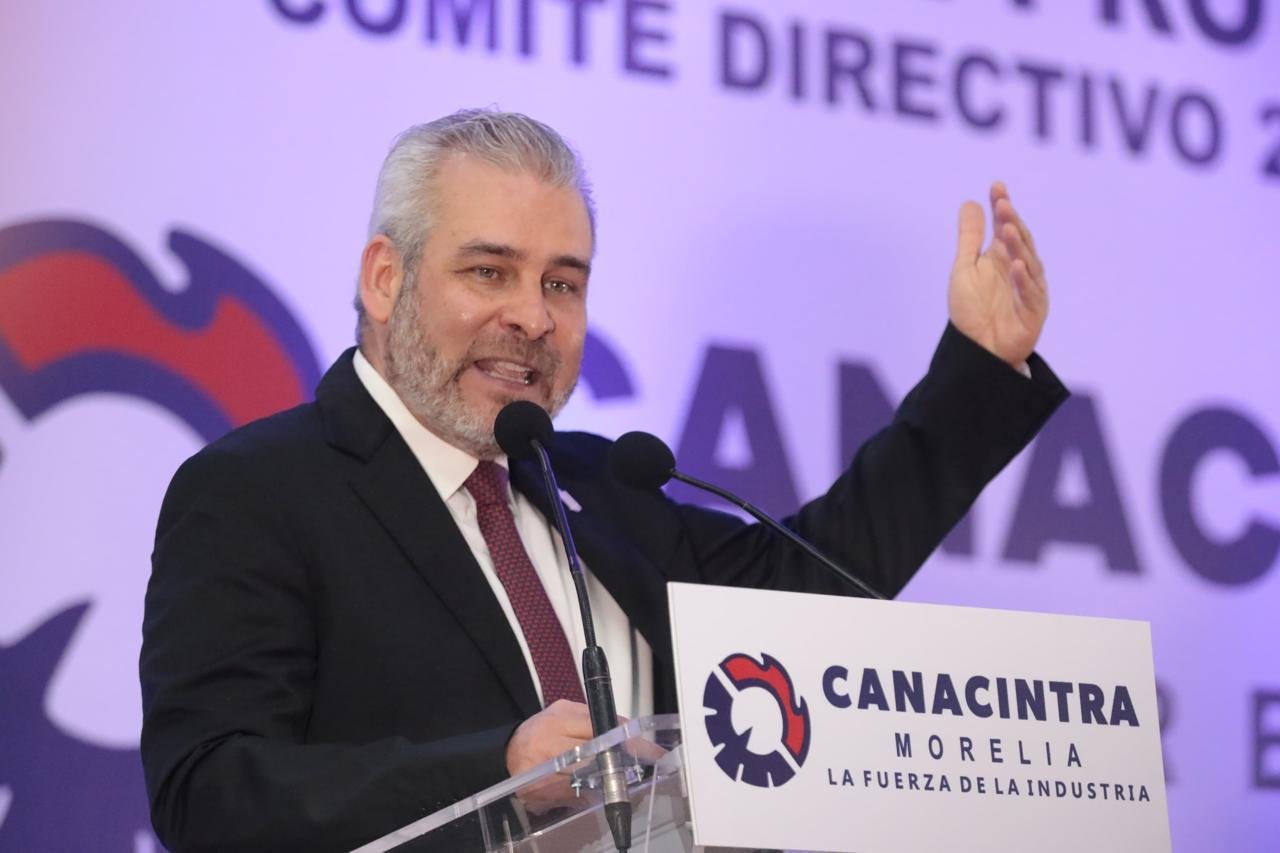 Al tomar protesta a los integrantes del Comité Directivo 2025-2026 de la Cámara Nacional de la Industria de la Transformación (Canacintra) delegación Morelia, el mandatario señaló que la estrategia nacional de industrialización plantea incentivar la producción local con mayor valor agregado, fomentar el comercio justo y garantizar mejores condiciones para los trabajadores de Michoacán.