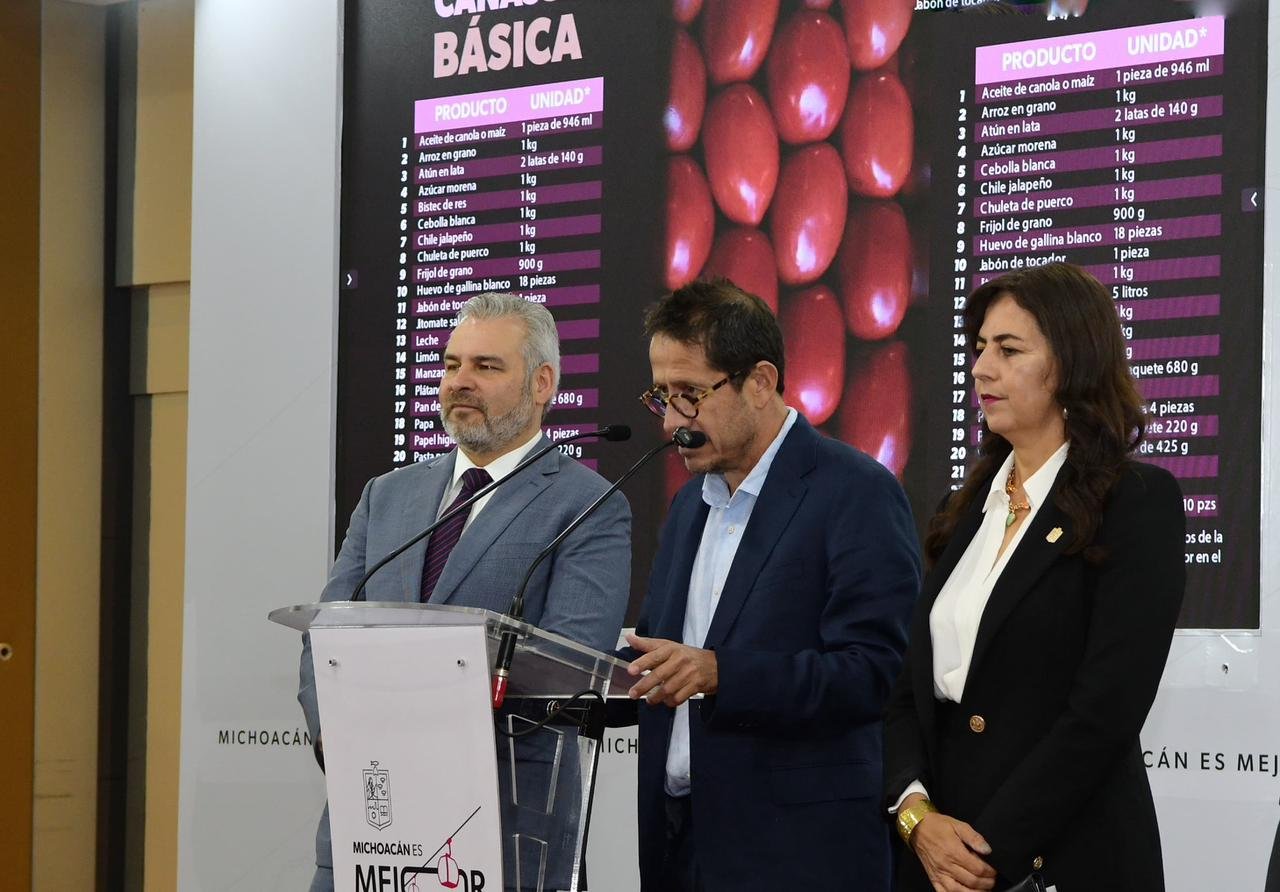 Morelia, Michoacán, 27 de octubre de 2025.- El monitoreo estatal de la canasta básica reportó un costo mínimo de 955 pesos en el tianguis de la Feria de Morelia, mientras que el precio más alto de la semana fue de mil 388 pesos en Walmart, Zamora, informó el titular de la Secretaría de Desarrollo Económico (Sedeco), Claudio Méndez Fernández.